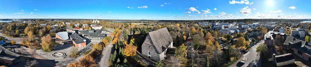 Lohjan Pyhän Laurin kirkko on rakennettu vuosien 1470 ja 1490 välillä, luultavasti aiemman puukirkon ympärille. Panoraamakuvaan mahtuu koko maisema.